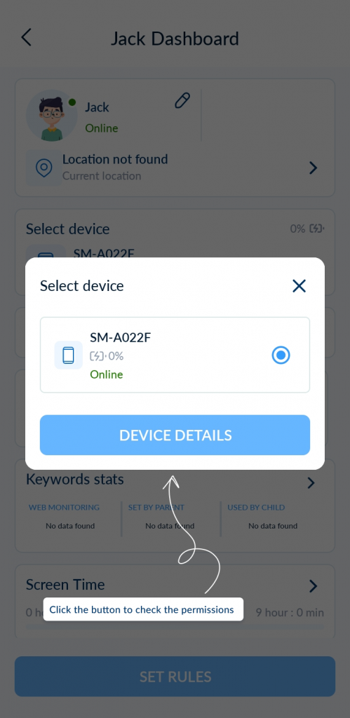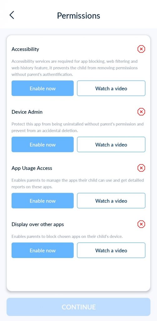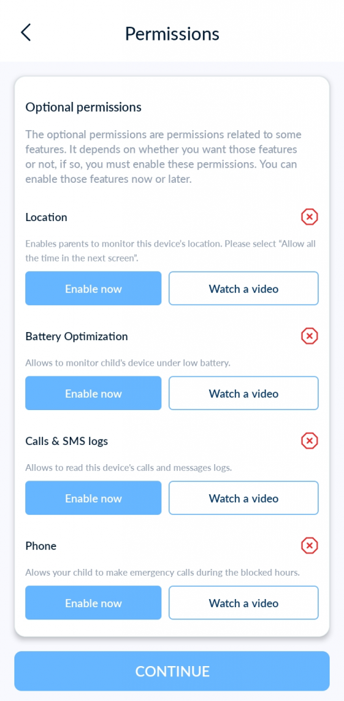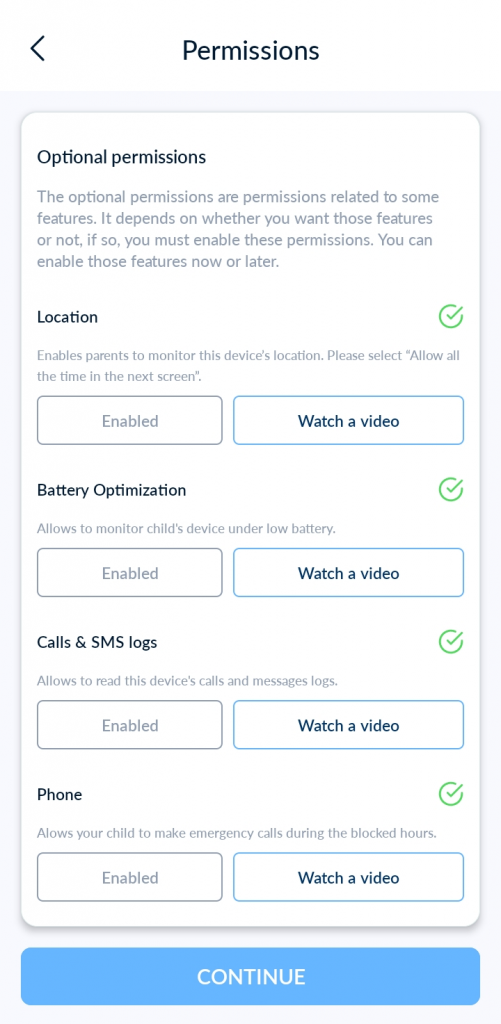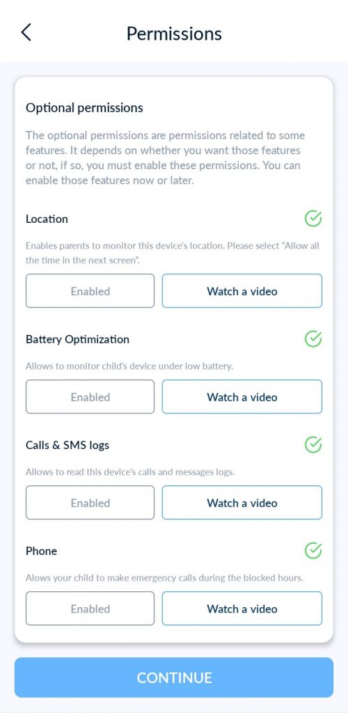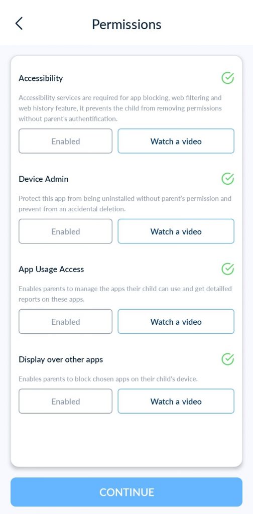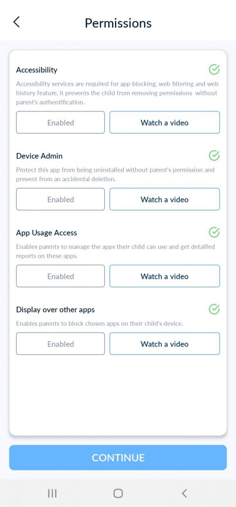 لإكمال الاقتران، يرجى قراءة دليل “الأذونات على جهاز الطفل”.