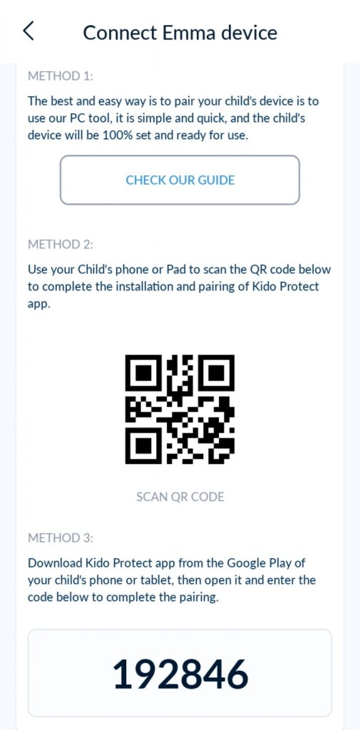 يمكنك الآن إقران جهاز طفلك بثلاث طرق: يمكنك إقرانه من خلال رمز QR أو رمز مكون من 6 أرقام أو عبر مثبت Windows (هذه هي الطريقة الأسهل والأكثر موثوقية لإقران جهاز طفلك).