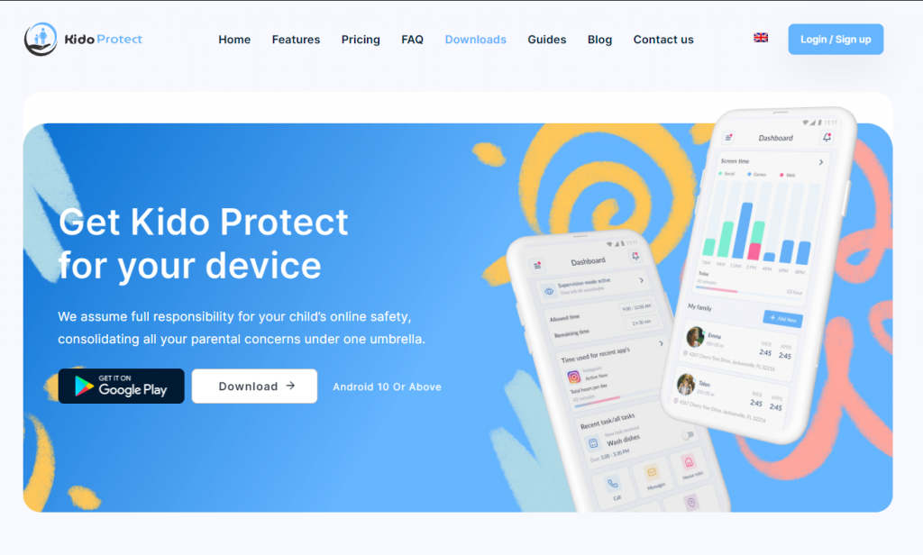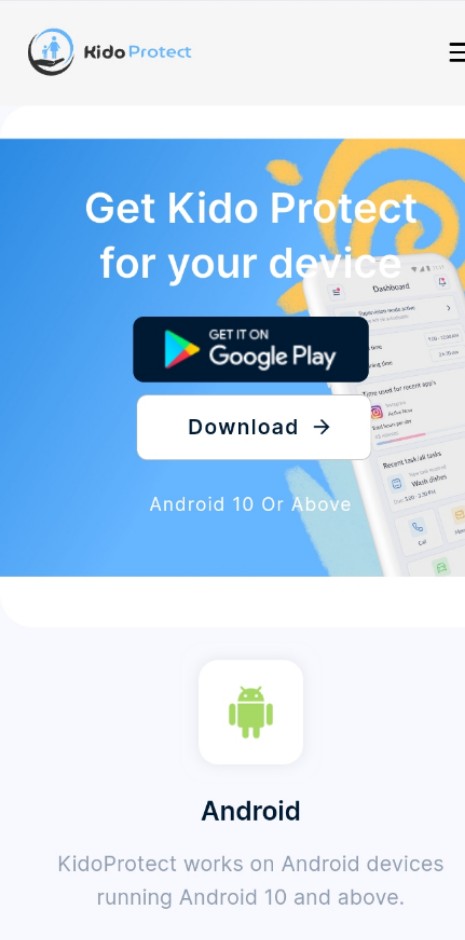 قم بتنزيل التطبيق من موقع kidoprotect.com/download.
