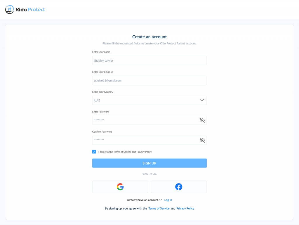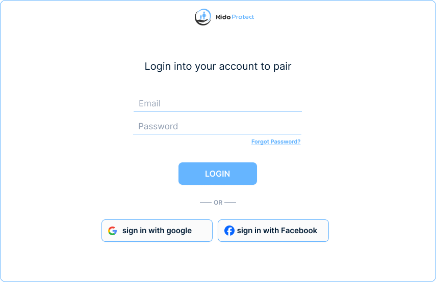 قم بتثبيت التطبيق واتبع التعليمات التي يقدمها التطبيق، أو يمكنك التسجيل على https://www.kidoprotect.com/sign-up/ .