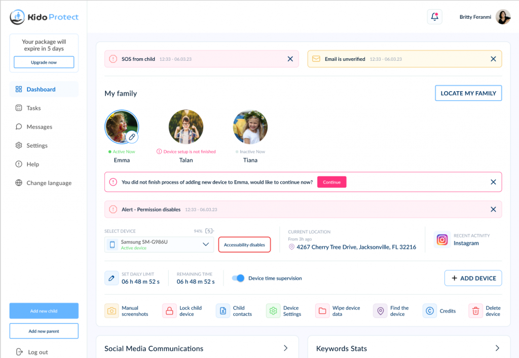 تأكد من سلامة طفلك على الإنترنت من خلال تطبيق كيدوبروتاكت للوالدين. تتيح لك هذه الميزة استخدام الكشف الذكي لمراقبة أنشطة طفلك على وسائل التواصل الاجتماعي والمرشحات المتقدمة لتنبيهك على الفور إلى اللغة أو السلوك غير اللائق. من خلال تعزيز عادات الاتصال الأكثر أمانًا، يساعد كيدوبروتاكت على إنشاء بيئة آمنة عبر الإنترنت لطفلك، مما يمنحك راحة البال أثناء استكشافه للعالم الرقمي.