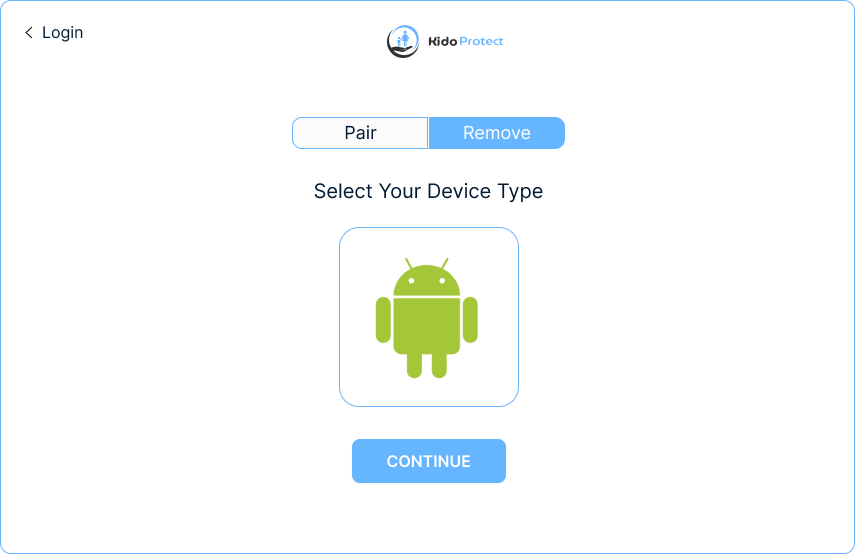حدد “إقران” وAndroid لنوع الجهاز. لا تقم بتوصيل جهاز طفلك بجهاز الكمبيوتر الخاص بك بعد.