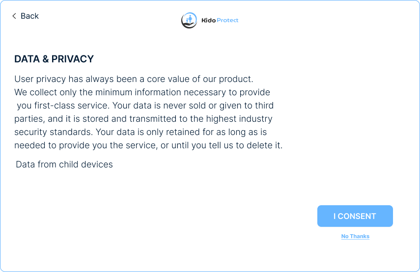 الموافقة على اتفاقية البيانات والخصوصية. يمكنك النقر هنا لمعرفة نوع البيانات التي يمكن جمعها أثناء استخدام OurPact.
