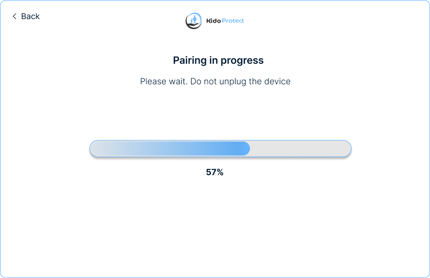 ستحدث الخطوة التالية تلقائيًا على جهاز طفلك. يرجى عدم فصل جهاز طفلك عن جهاز الكمبيوتر الخاص بك حتى ترى شاشة “النجاح” في نهاية تثبيت الاتصال.