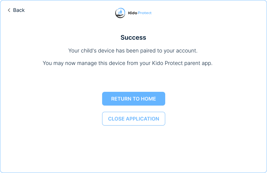 نجاح! يمكنك الآن فصل جهاز طفلك والاستمتاع بإدارة كيدوبروتاكت!