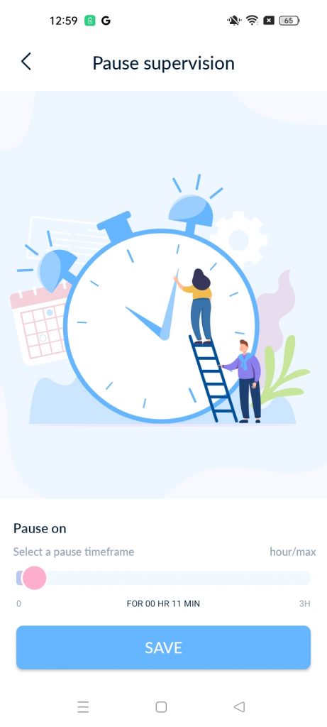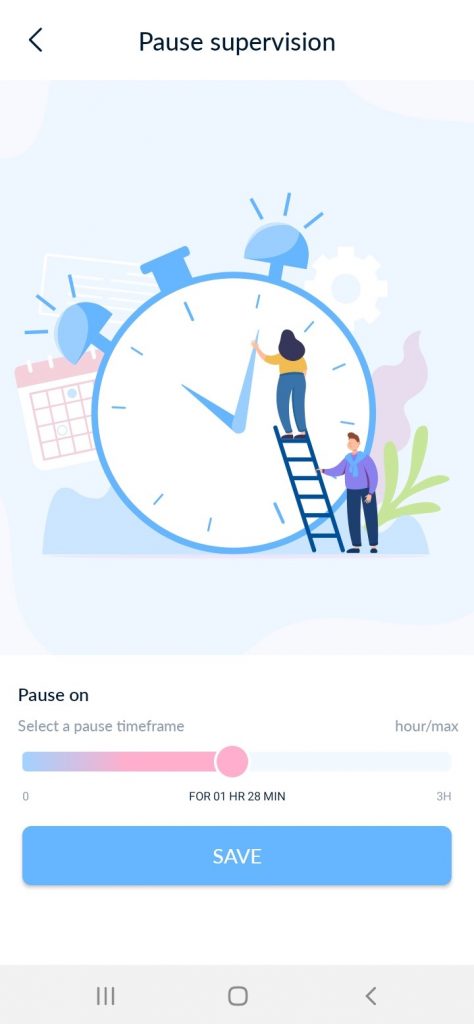 حدد المدة التي تريد إيقاف الإشراف مؤقتًا خلالها (الحد الأقصى هو 3 ساعات).