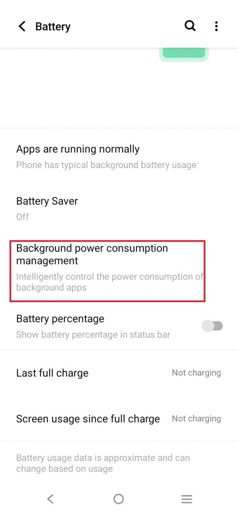 اضغط على “إدارة استهلاك الطاقة في الخلفية”.