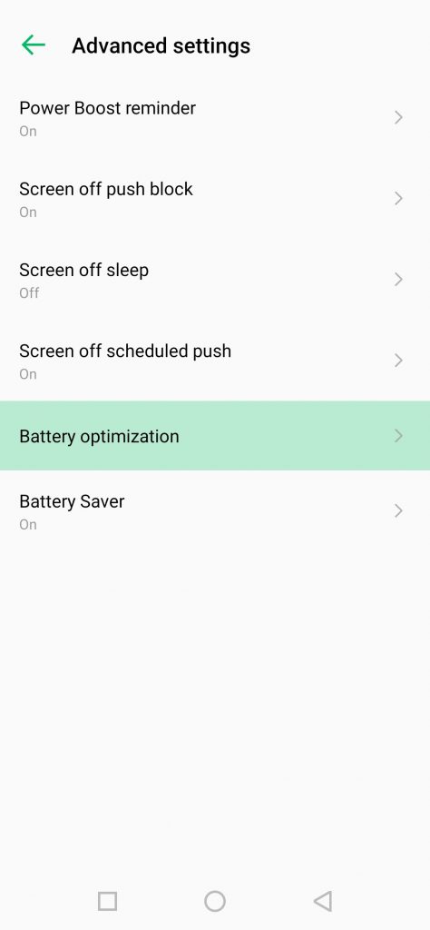 انقر على تحسين البطارية وابحث عن تطبيق كيدو بروتكت.