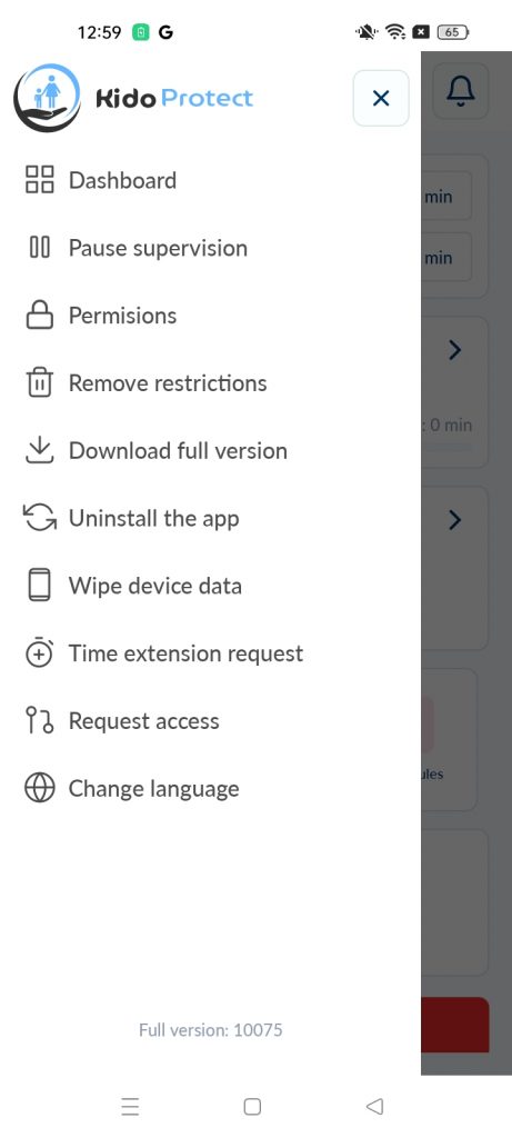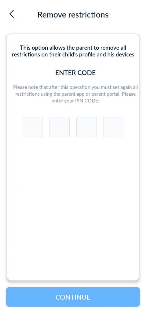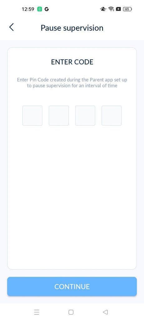 إيقاف القيود مؤقتاً: افتح تطبيق كيدو بروتكت، واضغط على القائمة، ثم اختر “إيقاف التقييد مؤقتًا”، وأدخل رقم التعريف الشخصي، واضبط المدة، وانقر على “حفظ”.