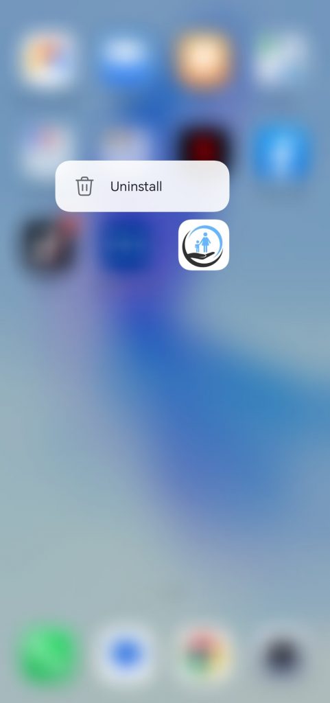 بعد ذلك، على جهاز الطفل: حدد موقع تطبيق كيدو بروتكت. اضغط مع الاستمرار على أيقونة التطبيق. حدد “إلغاء التثبيت” وقم بالتأكيد.