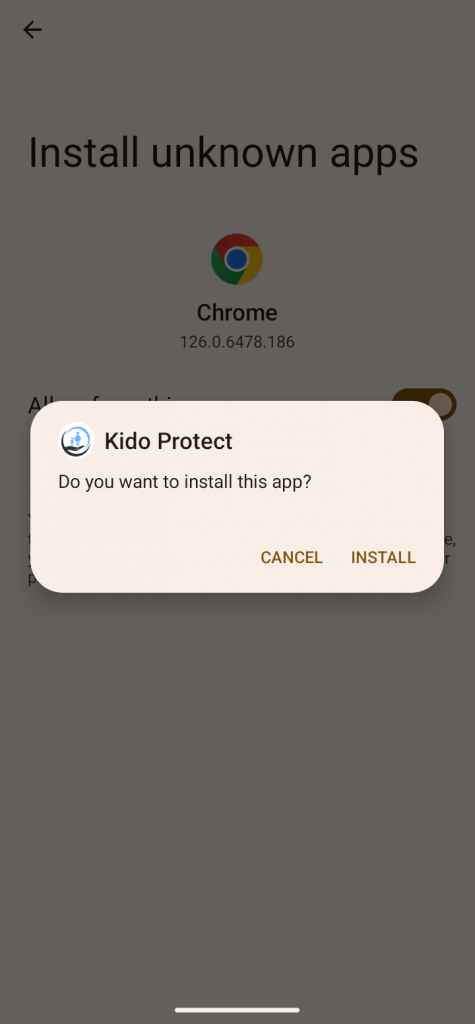 افتح متجر Play على الجهاز الأصلي (إصدار محدود). وبدلاً من ذلك، يمكنك تنزيل الإصدار الكامل من تطبيقنا من موقعنا على https://www.kidoprotect.com/download.